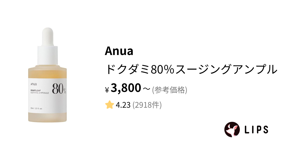 anua人気商品ランキング2位 newsScreenshot 2025.11.062025.11.07 ドクダミ80%スージングアンプル 【試してみた】Anua ドクダミ80%スージングアンプルの効果・肌質別の口コミ・レビュー「Anua ドクダミ80%スージングアンプル」のリアルなクチコミが2916件!国内最大コスメアプリLIPSで評判をチェック。使用感・テクスチャー・価格などの情報をはじめ、関連商品の情報や口コミも豊富に掲載!